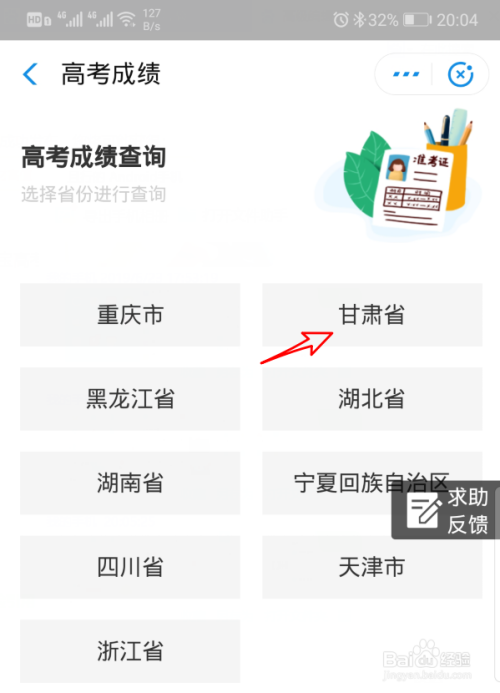 点击后授权该应用,在高考绩绩查询界面,选择本身地点的省份进入。