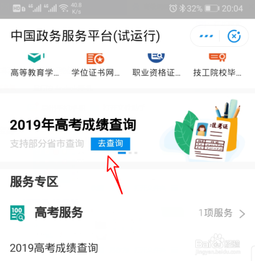 点击后会跳转到查询平台中,选择2019年高考绩绩查询的图片。