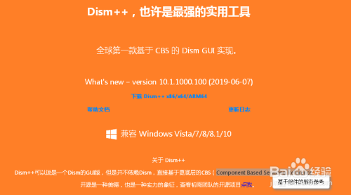 Dism++,这条目软件可以去它的官网下载,它是一条目免费的绿色软件。下图是它官网的页面: