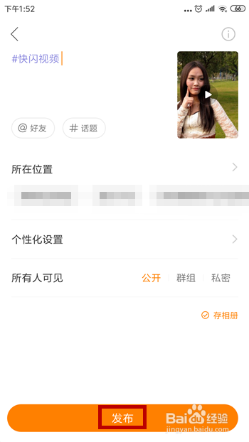 最后就会进入到发布界面,对视频进行文字申明后点击【发布】上传视频。