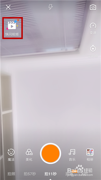 打开快手的录制界面后可在左上角看到【快闪视频】,点击起头创作。