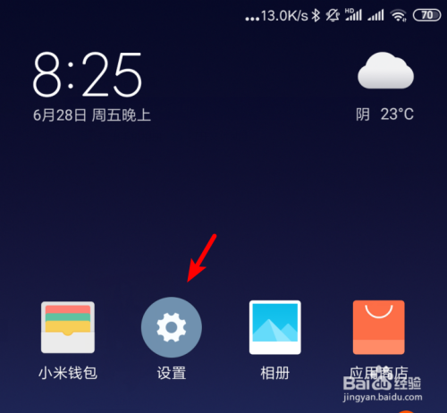 解锁小米手机进入系统后,在手机中点击设置的图标进入。