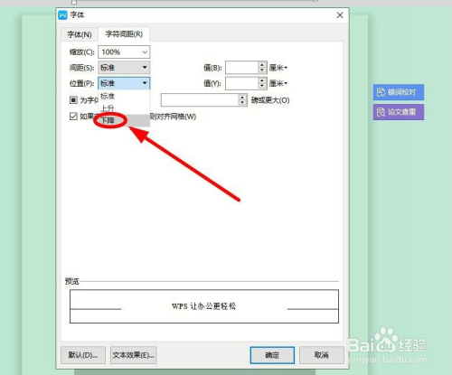 单击“位置”后面的下拉箭头,调出下拉菜单,鄙人拉菜单中,选择“下降”单击