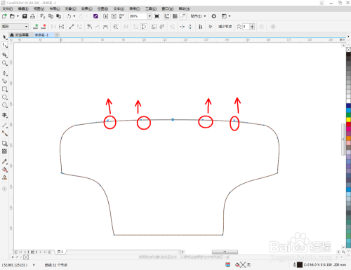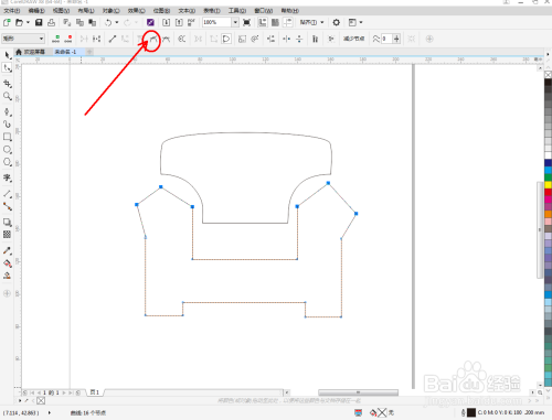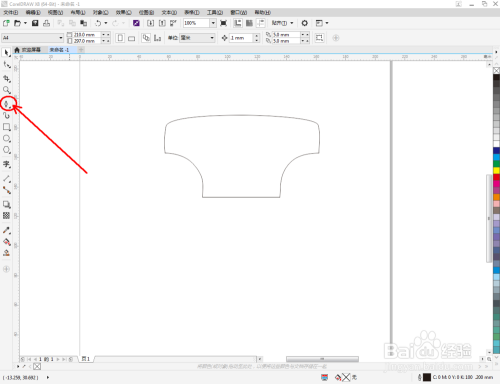 点击【钢笔东西】按图示在作图区域绘制出一个多边图案。点击【外形东西】,框选所有的节点后,点击【转化为曲线】将节点转曲。完当作后,选中图示图案上的节点,点击【光滑节点】将节点进行光滑处置并调整好节制点(如图所示);