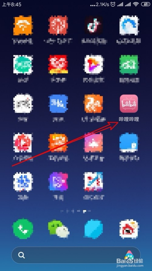 在手机屏幕上摆布滑动,找到安装好的哔哩哔哩的图标