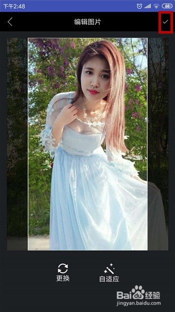 接下来需要裁剪照片的区域,选择好后点击右上角的【√】完当作裁剪。