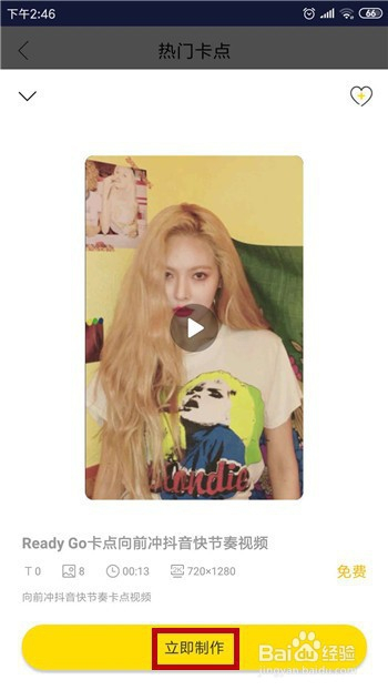 在热点卡点视频的模板中找到【Ready Go卡点】模板并点击打开,如图所示。