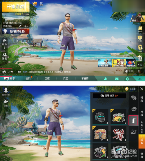 如接着选择进入是要经典模式选择戈壁地图,跳伞之后在地图旁的点击“喷漆罐”可以看到喷涂选项,点击会呈现绿色圆圈就可喷在山上,然后需要等几秒之后才能再替代其他喷涂