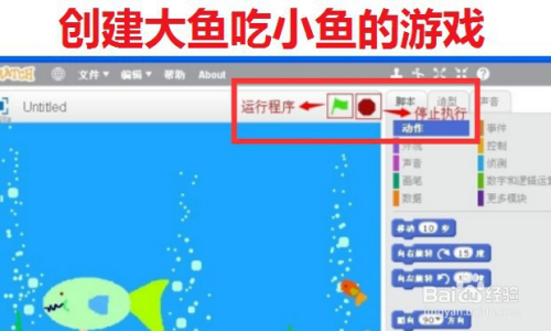 在大型游乐土里,我们经常看到有大鱼吃小鱼的游戏。当然平易近间有“大鱼吃小鱼,小鱼吃虾子,虾子吃泥巴”的说法。如何在Scratch2.0里建立大鱼吃小鱼的游戏?请看下面经验。