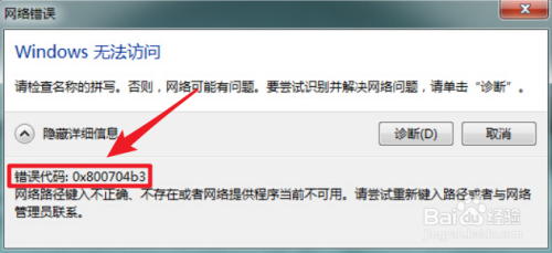 错误代码:0x800704b3申明电脑的收集路径键入不准确,不存在。或者是收集供给的程序当前处于不成用状况。它属于一种收集故障。