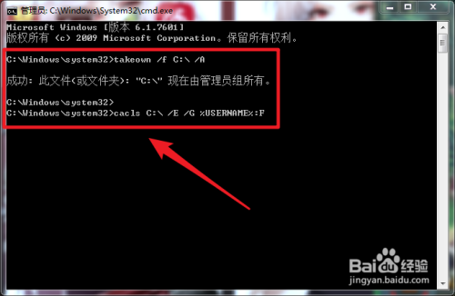 cacls C:\ /E /G %USERNAME%:F