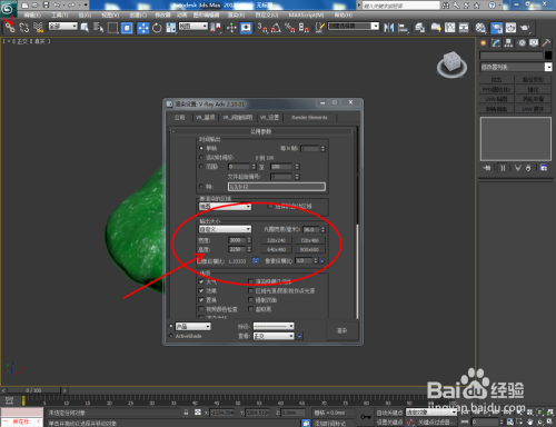 点击【衬着】-【衬着设置】,弹出衬着设置对话框,按图示设置好输出大小参数。调整好模子的衬着角度后,点击【衬着】将建造好的翡翠模子衬着出图即可。