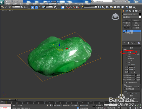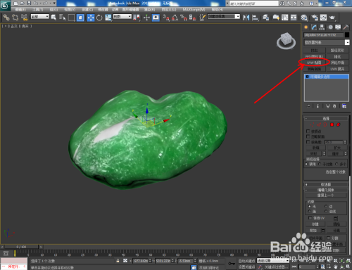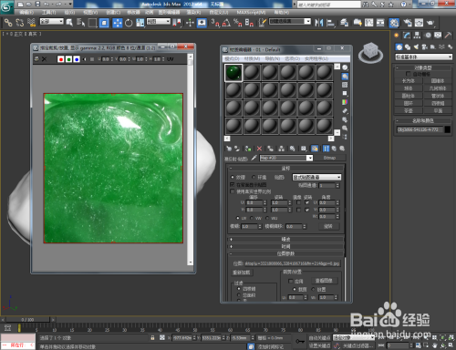 点击【漫反射】右边的小方框,添加一张翡翠材质贴图。完当作后,将设置好的材质球附加给模子。选中模子,点击【UVW贴图】,按图示设置好UVW贴图的各个参数(如图所示);