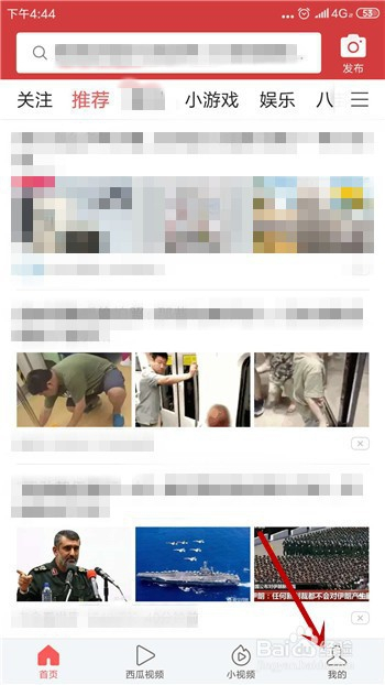 点击打开今日头条后在底部的导航栏里点击【我的】,如图所示。