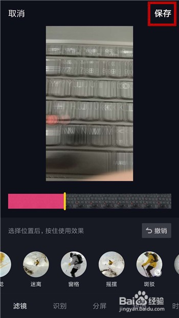 在按住的过程中就会给这段加上扭捏的结果,添加完当作后点击【保留】选项。