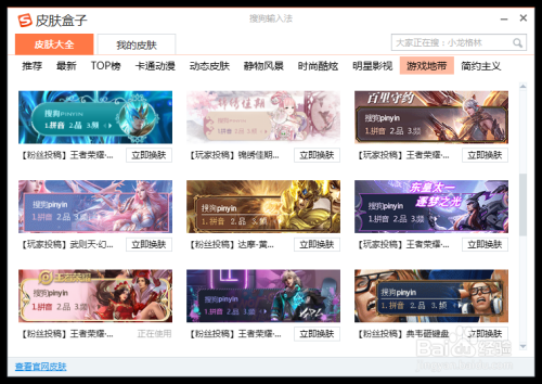 里面也有良多明星的皮肤,将鼠标放到一个皮肤上面,右边就会呈现它的预览结果。