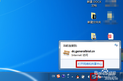 我们需要查看并更改收集适配器,打开电脑后在右下角点击【收集】图标,然后点击【打开收集和共享中间】选项。