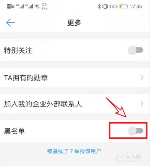 点击进入后,将黑名单后方的开关打开。