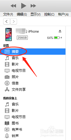 在itunes识别到你的苹果手机今后,点击图示位置;