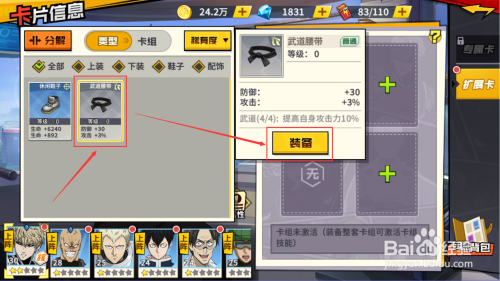 大师好,下文为大师介绍一拳超人手游如何装备服饰卡片