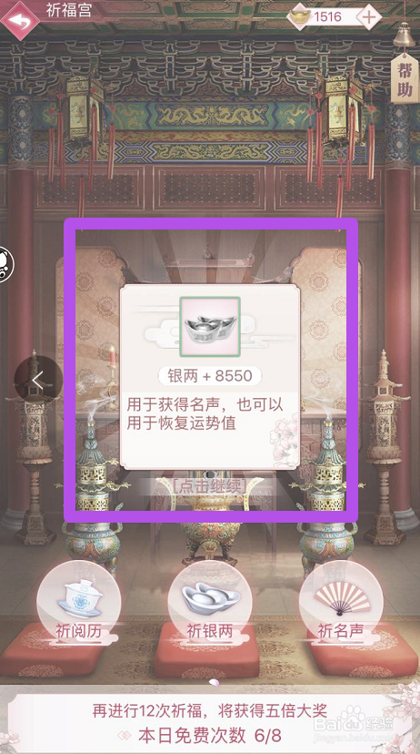 想要祈银两就点击中心的按钮,就可以祈求获得响应的银两。