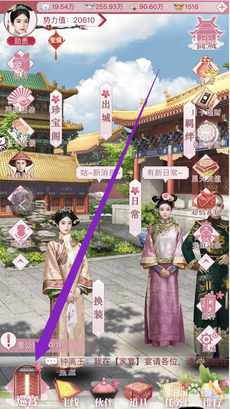打开宫廷秘传手游,在首页面内点击巡宫按钮,进入到巡宫页面。