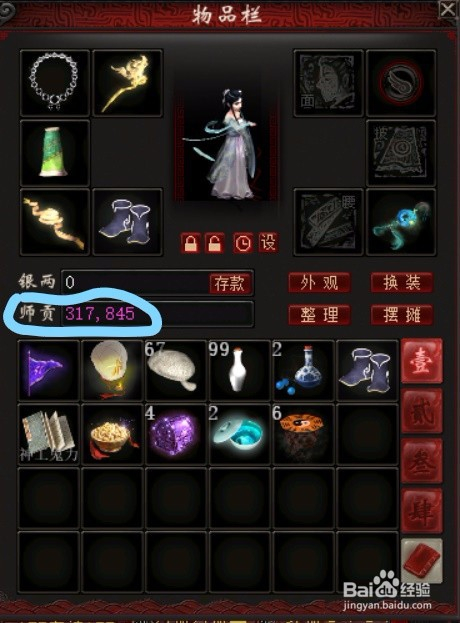 当作功打败它后,继续按照上述的流程,继续做使命,即在使命栏找到使命,先找紫衣的替身,然后找对应的NPC战斗,一共有5个,完当作后,你就会看到你的师门进献增添了不少,如下图所示