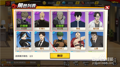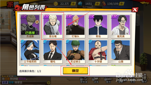 选中“脚色列表”中,想要展示在家园中的英雄脚色,然后点击下方的“确定”按钮。