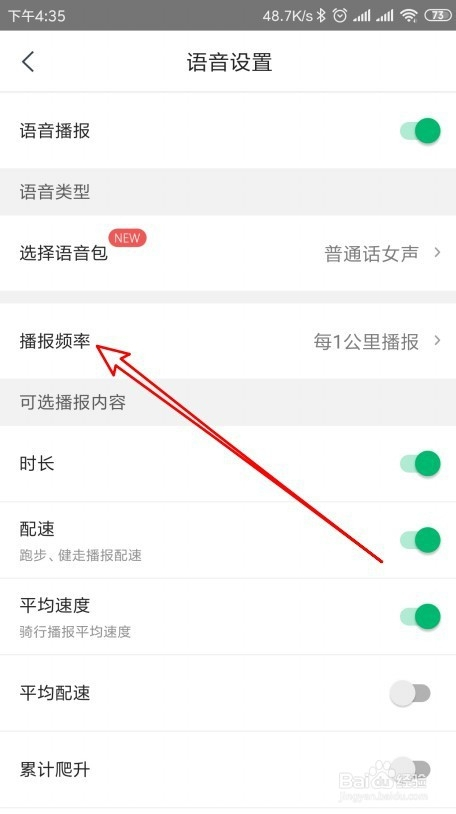 在打开的语音设置页面中找到播报频率设置项