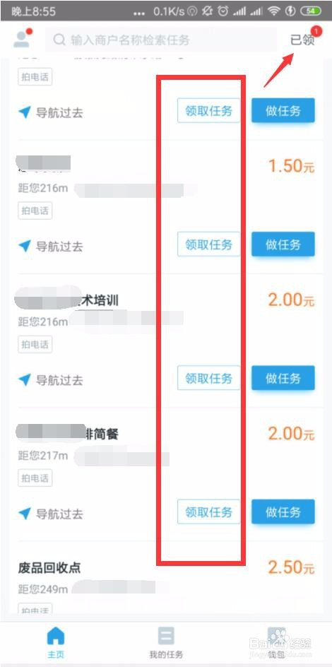 接下来打开APP,在本家儿页可以看到如图所示的使命列表,这些使命都是软件按照你的定位保举的,可以领取一个使命。