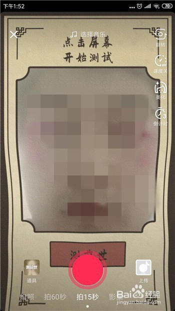 点击之后就进入到了时辰录制界面,此时可看到呈现了测前宿世的特效,点击屏幕起头检测。