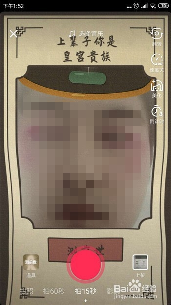 系统会主动对我们的脸部进行检测,检测竣事后会在顶部呈现我们的前宿世身份,这个特效视频就是这么拍的。
