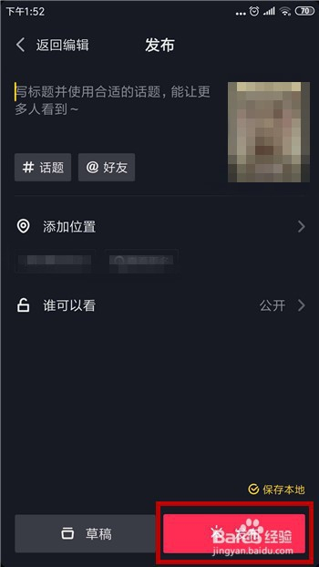 像日常平凡一样录制视频并进行编纂,最后在发布界面里介绍视频后点击【发布】即可。
