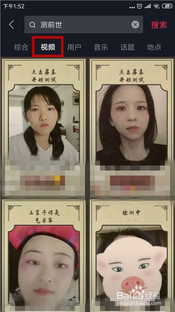 打开搜刮界面后搜刮【测前宿世】,然后在搜刮成果中点击【视频】下方的肆意一个视频。