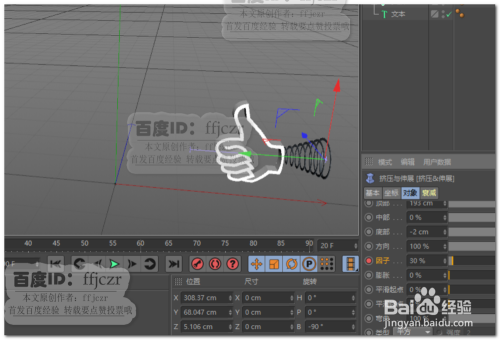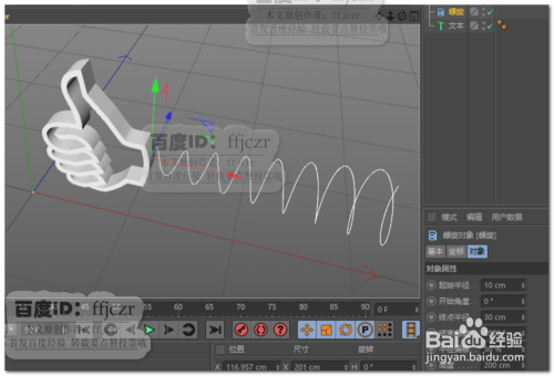 建立一个样条螺旋线,肇端半径为10,终点半径为30,竣事角度为2880。将螺旋线的肇端端移动毗连到点赞手势的结尾,如图所示。