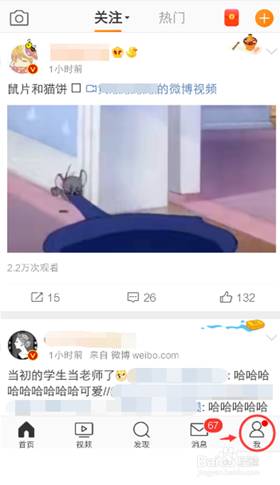 进入微博首页,点击东西栏最下方的【我】,如图所示。