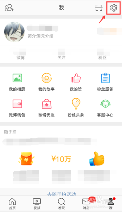 进入我页面,点击右上角的设置图标,如图所示。