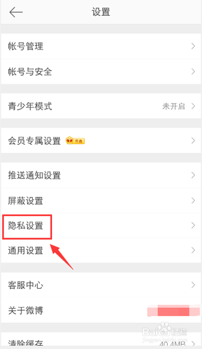 进入设置页面,点击【隐私设置】如图所示。