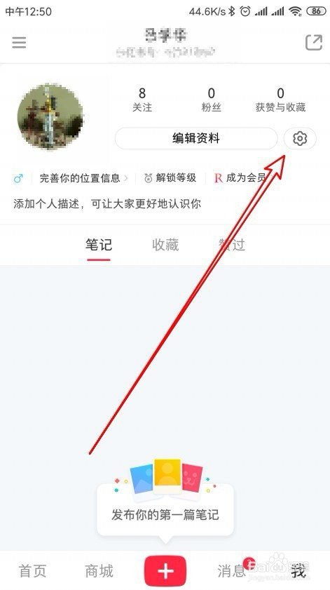 点击后打开我的具体页面,然后点击右上角的设置按钮