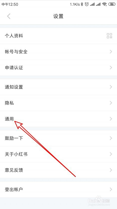 这时就会打开小红书的设置页面,在页面中点击通用的菜单项