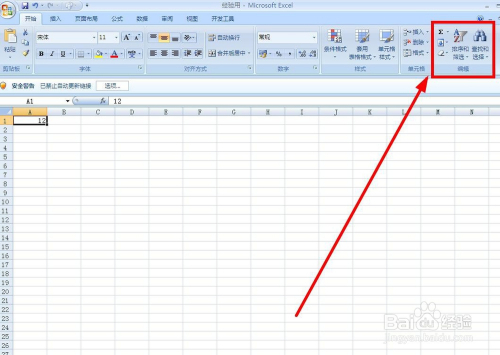 在菜单栏“起头”选项卡下找到“编纂”选项组