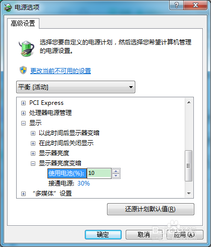Windows 7系统可以设定,待机一段时候后,显示器主动变暗。那么问题来了,显示器变暗到什么水平呢?其实,这是可以进行设定的。