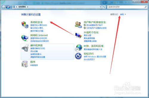 在查看体例为“类别”的环境下,点击“系统和平安”;
