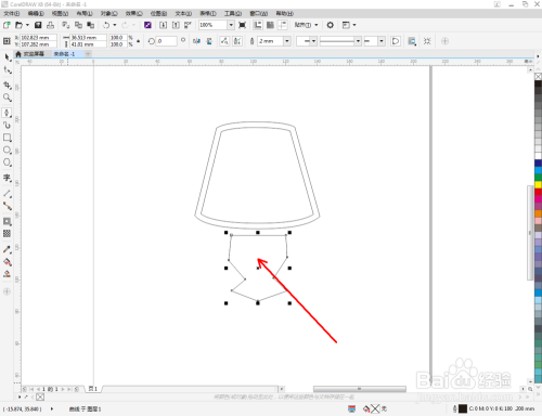 点击【钢笔东西】按图示在作图区域绘制出另一个多边图案。点击【外形东西】,框选所有的节点后,点击【转化为曲线】将节点转曲。完当作后,选中图示图案上的节点,点击【光滑节点】将节点进行光滑处置并调整好节制点(如图所示);