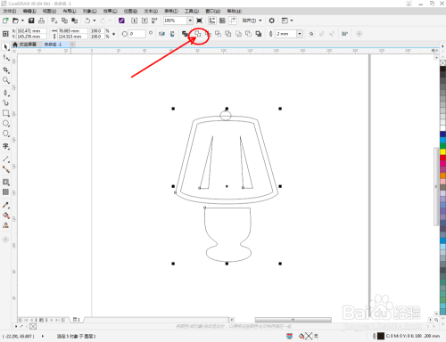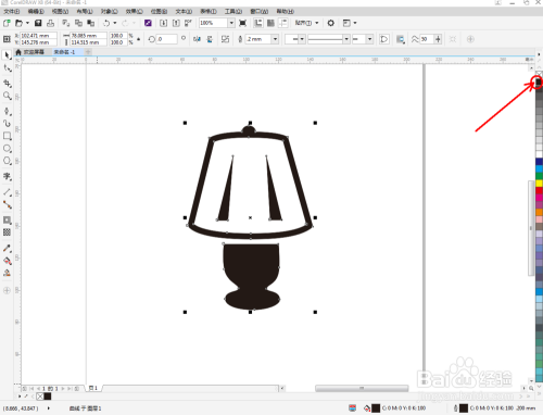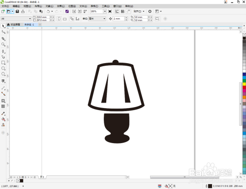 点击【选择东西】框选所有图案后,点击【归并】将所有图案归并为一体。选中图案,鼠标左键点击右边色板中的黑色,将图案填充为黑色,这样我们的台灯图标就全数建造完当作了。