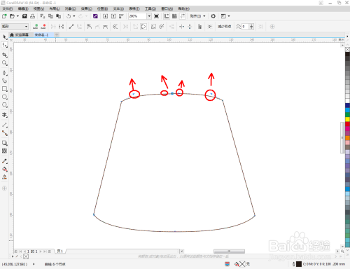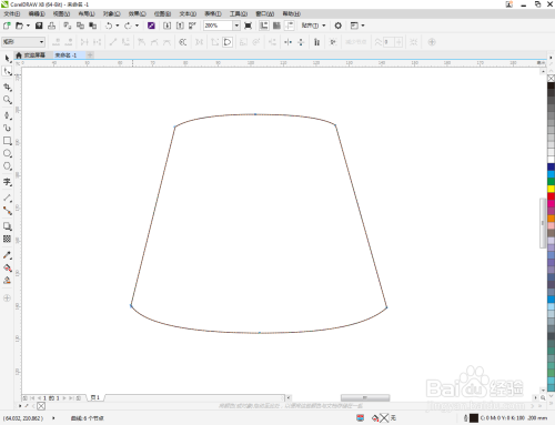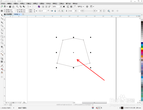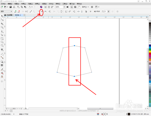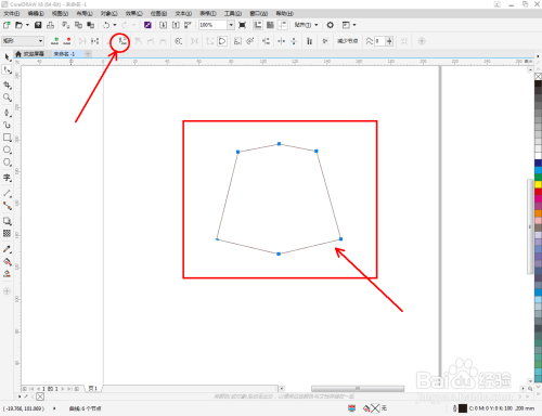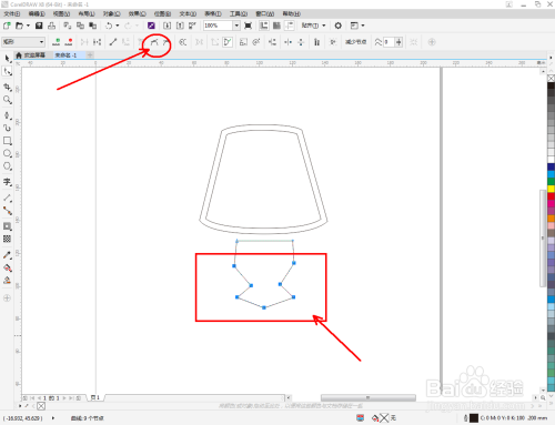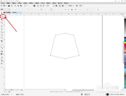 点击【钢笔东西】按图示在作图区域绘制出一个多边图案。点击【外形东西】,框选所有的节点后,点击【转化为曲线】将节点转曲。完当作后,选中图示图案上的节点,点击【光滑节点】将节点进行光滑处置并调整好节制点(如图所示);