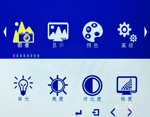 1. 长按①功能键约3秒直到OSD菜单呈现,同时按键上的指示灯会亮起。这时,②③④⑤键的功能将会变为OSD功能。
