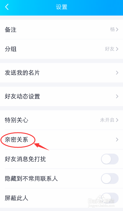 进入设置页面,点击【亲密关系】如图所示。