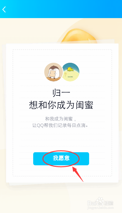 对方点击邀请页面,会进入以下页面,点击【我愿意】,