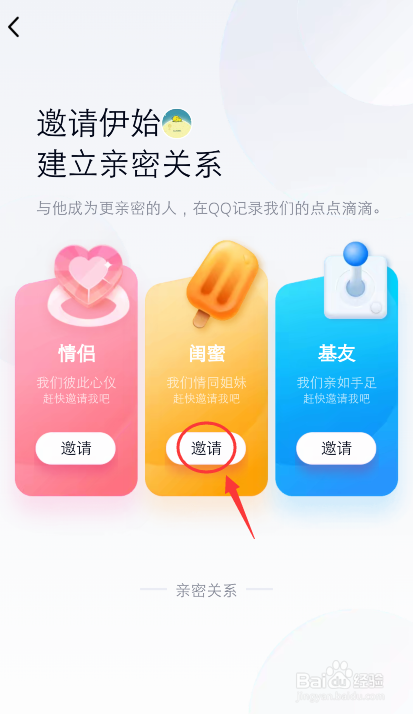 进入以下页面,按照你想要设置的关系,选择对应的邀请,好比:闺蜜。